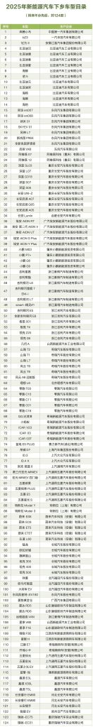 2025年新能源汽车下乡车型目录: